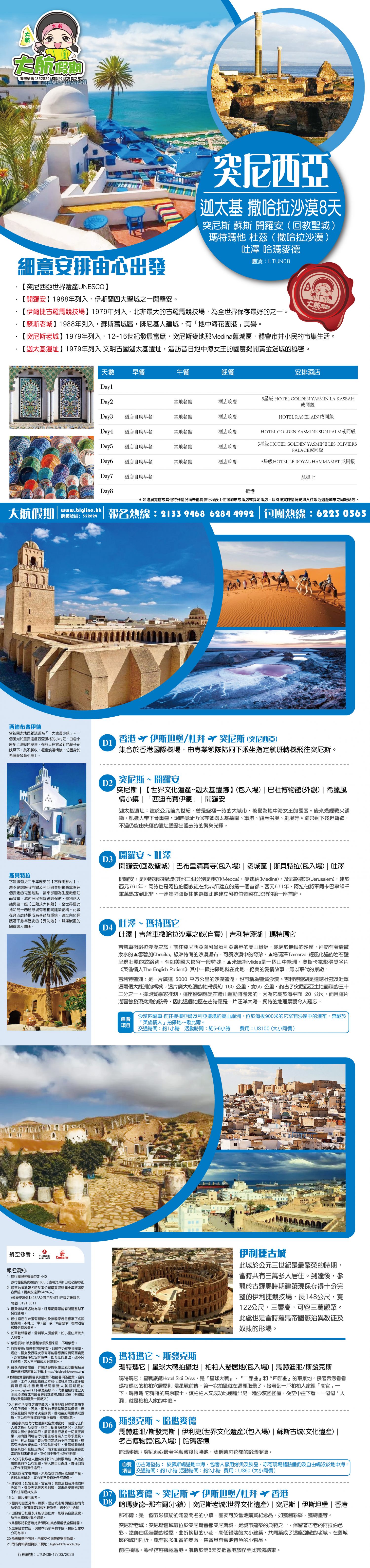 突尼西亞 迦太基 撒哈拉沙漠 8天 / (團費免收燃油附加費) 突尼斯 蘇斯 開羅安(回教聖城) 瑪特瑪他 杜茲(撒哈拉沙漠) 吐澤 哈瑪麥德