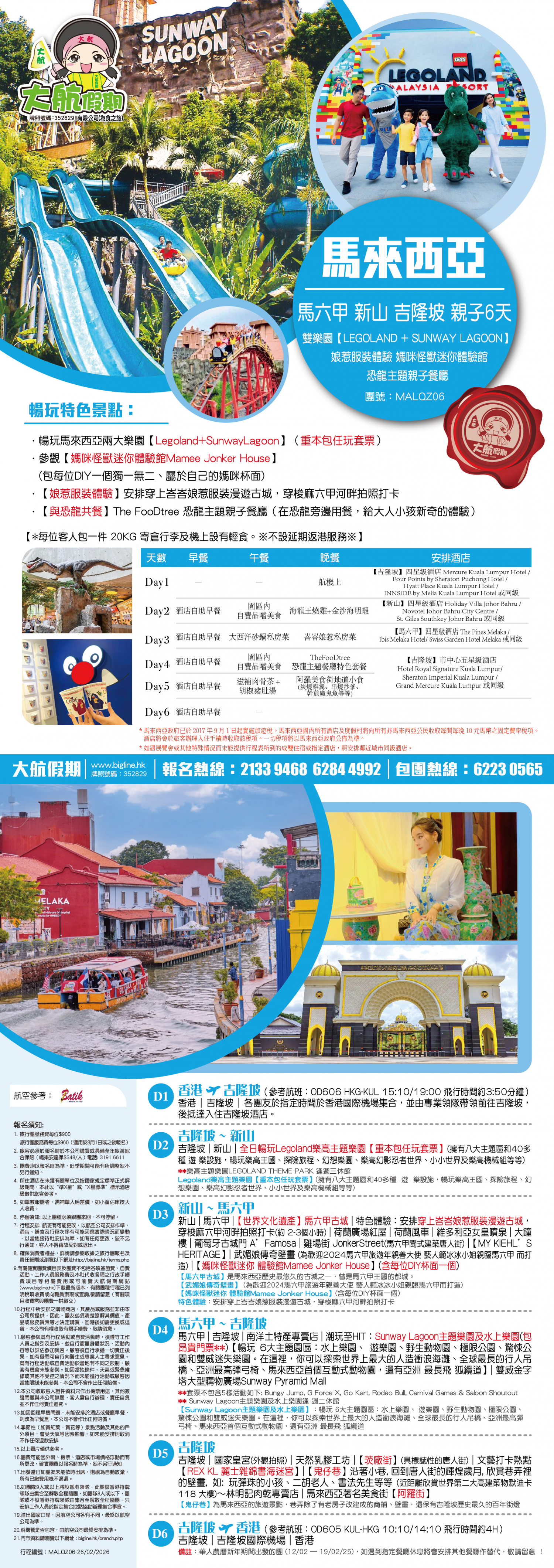 【吉隆坡 · 狄臣港 · 馬來西亞6天】/天空之鏡 馬六甲古城 荷蘭紅屋廣場 全程入住五星級酒店 膳食全包 狄臣港每房設有私人泳池】