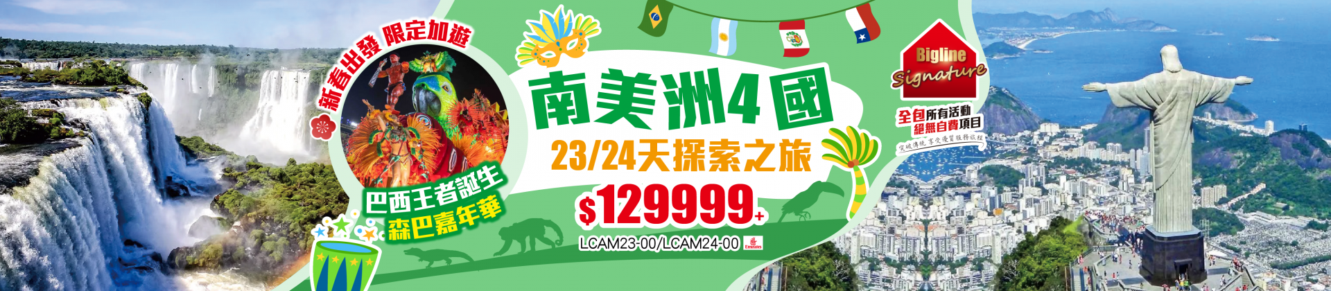南美洲4國24天一年一度嘉年華(王者誕生)探索之旅 (己包括機場稅,燃油附加費、同埋領隊導遊小費 )/ 巴西,阿根廷,秘魯,智利 /亞馬遜原始雨林,垂釣食人魚體驗 ,伊瓜蘇大瀑布,馬丘比丘天空之城