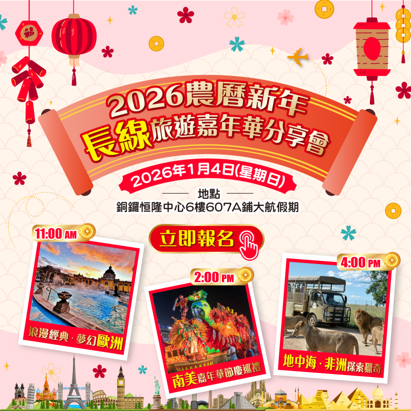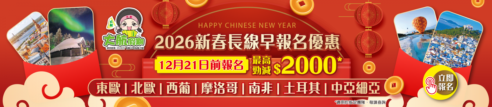 新春(中國長線)早報優惠(2月17-20日年初一到初四出發之團隊)