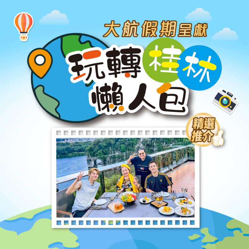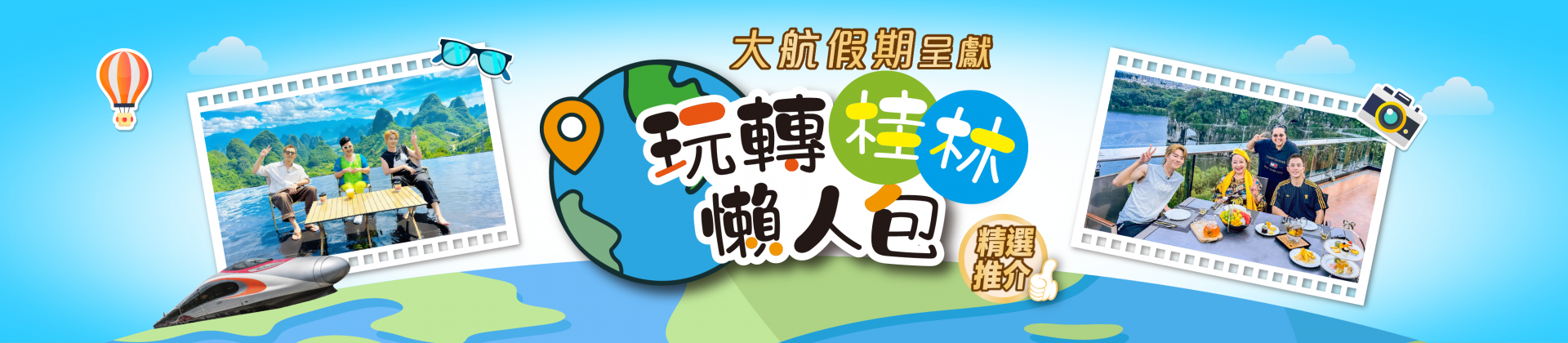 【4人成團 私人專屬旅行 包服務費】玩轉桂林懶人包「全港獨家:2晚連住陽朔途易藍酒店 陽朔雲端攝影基地」 (4人竹筏遊 千里江山圖 山水列車 夜遊"巨龍巡遊" 象鼻山觀景下午茶 西街)西九龍往返4天