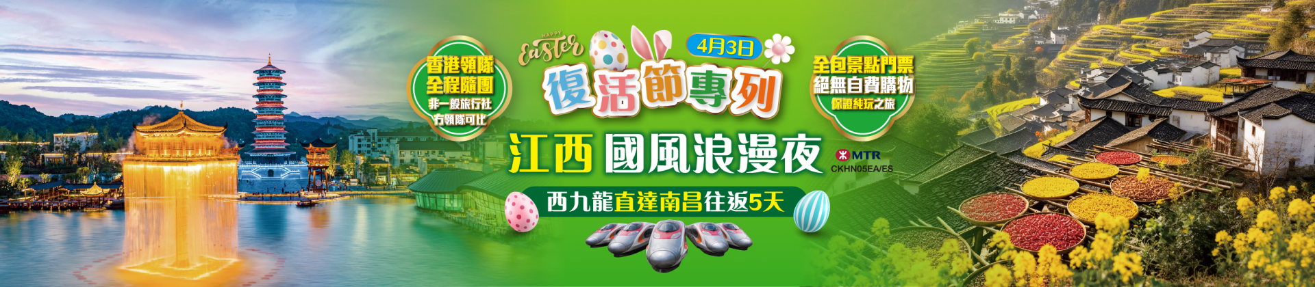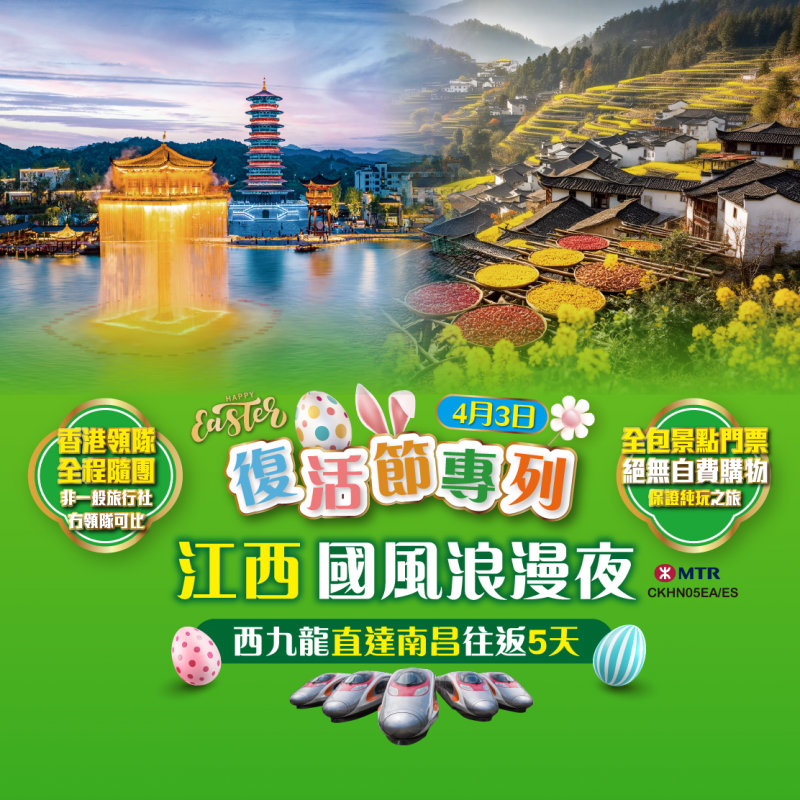 復活節#4.3江西專列【兩晚連住網紅熱點城市·上饒 遊覽<望仙谷 婺女洲 葛仙村>】夜遊贛江·望滕王閣 婺源梯田油菜花 鳳凰溝櫻花 大茅山氧吧 千燈會(放飛孔明燈) 西九龍直達南昌 高鐵5天
