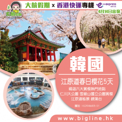 大航假期 X 香港快運專機 韓國 江原道春日樱花5天 暢遊六大賞樱熱門地點仁川大公園 雪嶽山國立公園賞樱江原道秘景 鏡蒲台 5天