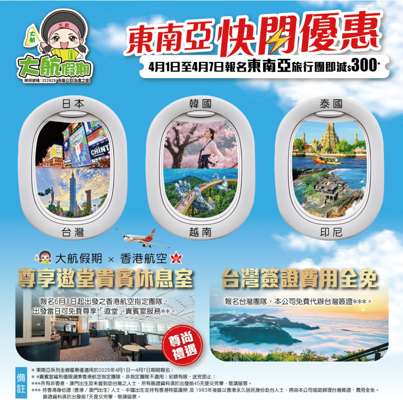 快成團 22/4, 23/4, 24/4, 25/4, 29/4, 30/4, 26/6, 27/6