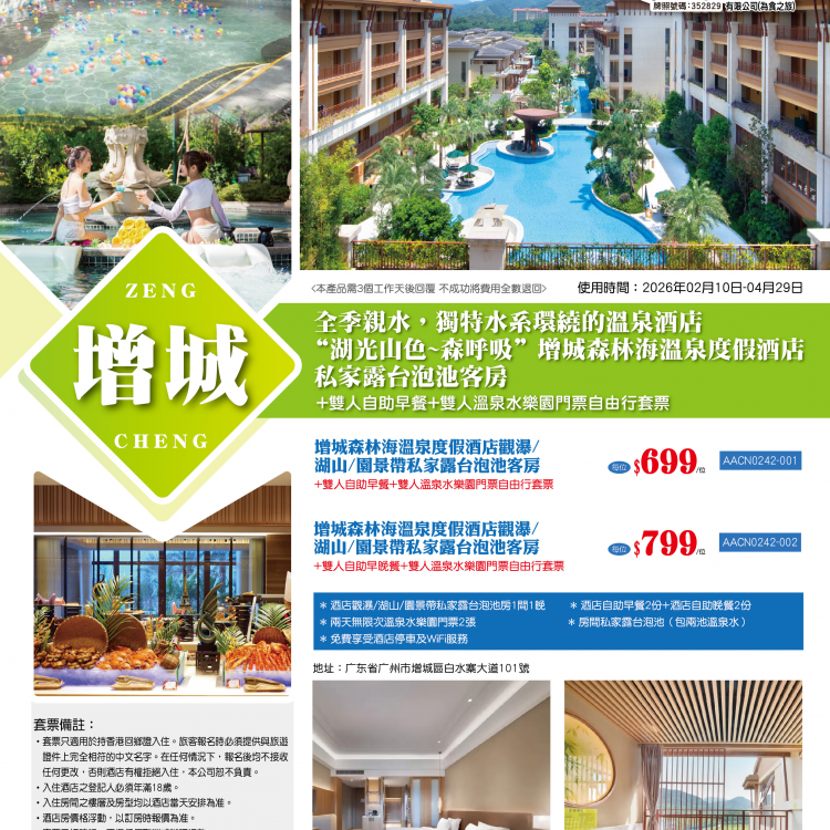 1.套票只適用於持香港回鄉證入住。旅客報名時必須提供與旅遊證件上完全相符的中文名字。在任何情況下,報名後均不接收任何更改,否則酒店有權拒絕入住,本公司恕不負責。