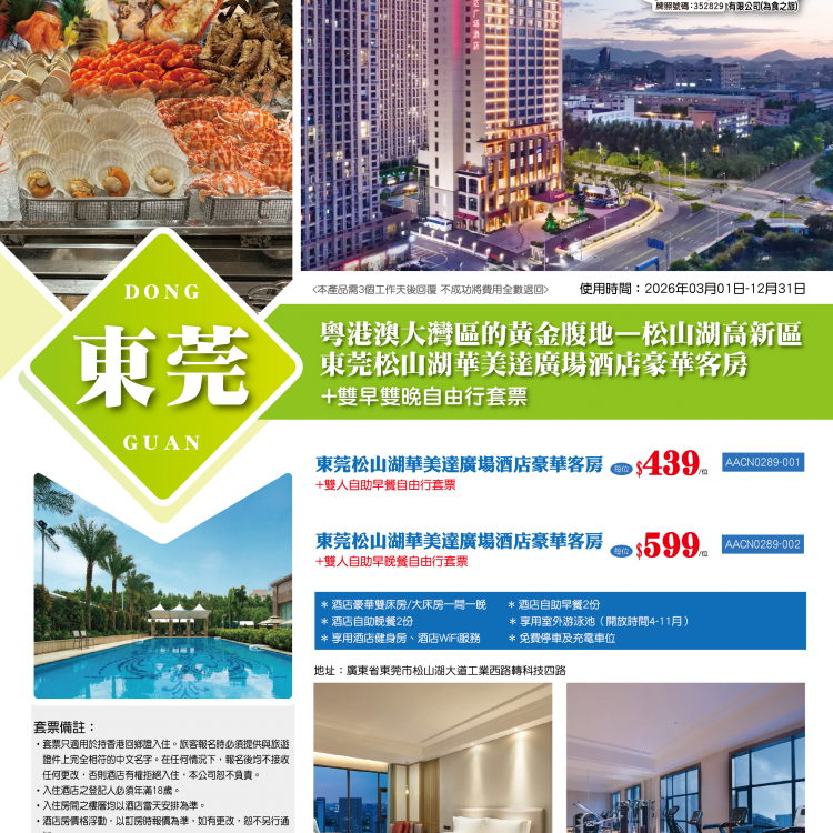6.以上套票價格以雙人計算(需最少按2位成人同行報名佔1房)