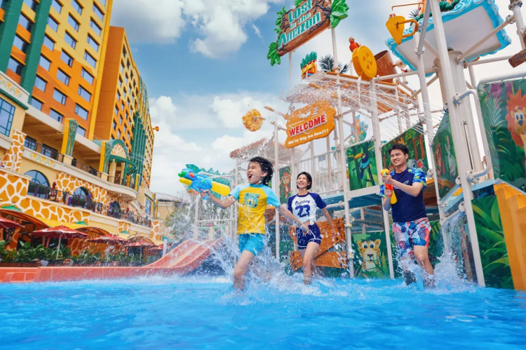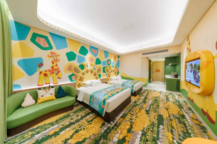 清遠長隆長頸鹿城堡酒店,是清遠長隆度假區推出的第一家親子主題酒店,其主題取材於長隆原創動畫片《卡卡虎大冒險》中長頸鹿「酋長一家」的故事。長頸鹿IP作為一種文化符號,也將突破「次元壁」,把虛擬動畫角色和現實動物的觀賞互動相結合,創新消費場景、捕捉情緒價值,為遊客打造多元化沈浸式體驗。長頸鹿城堡酒店擁有九種主題房型,1258間客房,5個主題餐廳,集溫泉度假、宴會餐飲、親子遊玩和商旅會議等功能於一體,可以滿足客人的各項需求。