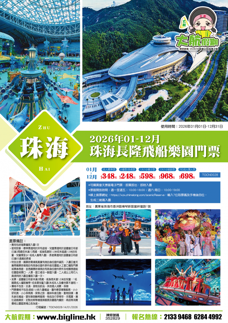 2026年01-12月珠海長隆飛船樂園門票