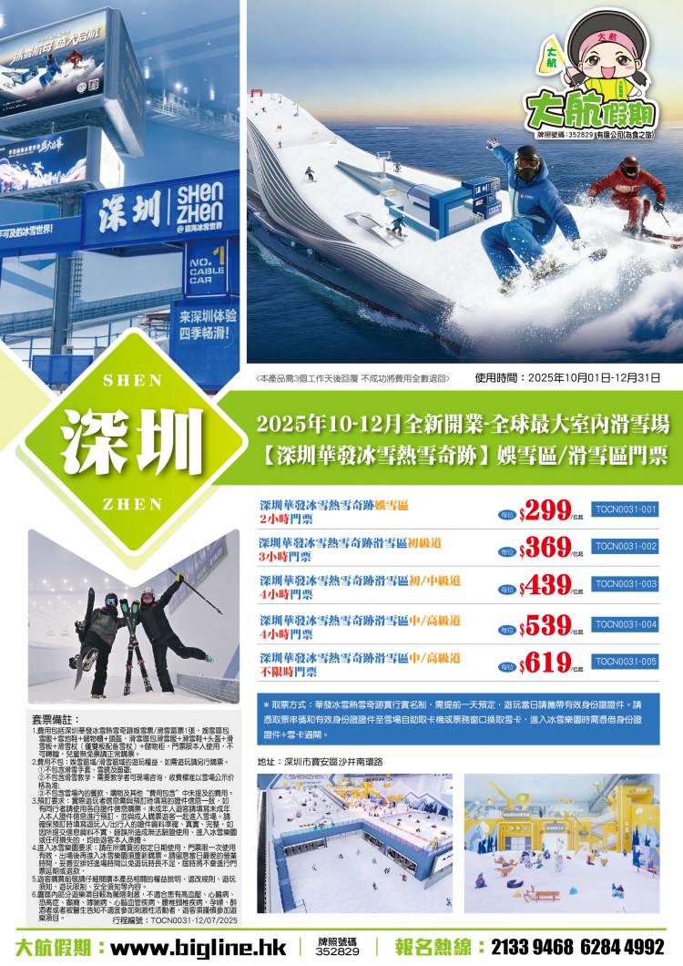 TOCN0030-001 深圳華發冰雪熱雪奇跡娛雪區2小時門票$229/位起