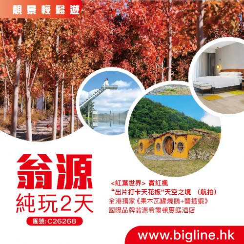 【季節限定 深秋美景】<紅葉世界> 賞紅楓 "出片打卡天花板"天空之境 (航拍) 全港獨家《果木瓦罐燒鵝+鹽插蝦》國際品牌翁源希爾頓惠庭酒店 純玩2天
