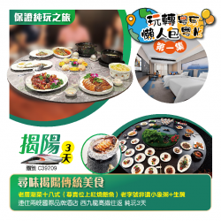 C39209 - 《玩轉粵東粵北懶人包-第一集》尋味揭陽傳統美食 老厝潮菜十八式(尊貴位上紅燒鮑魚)《老字號非遺小象粥》《普寧特色豆醬雞》連住兩晚國際品牌酒店 西九龍高鐵往返 純玩3天