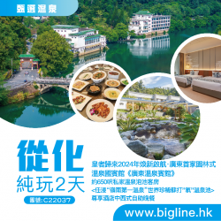 C35063 - 【甄選溫泉】全團提升入住 全港獨家《陽春DS溫泉度假酒店》約800呎一房一廳親水溫泉套房 重本包<中醫療養5選1項目體驗>+任浸養生“美人湯”偏矽酸溫泉 特別安排“星空”圍爐夜茶&戶外KTV 純玩3天