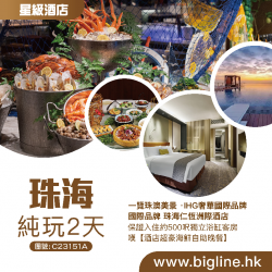 C23151A - 【星級酒店】一覽珠澳美景 · IHG奢華國際品牌《珠海仁恆洲際酒店》保證入住約500呎獨立浴缸客房 嘆【酒店超豪海鮮自助晚餐】 純玩2天