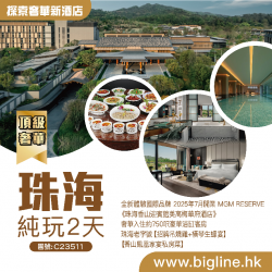 C33127A - 【頂級奢華新酒店】2025年7月開業 MGM RESERVE《珠海香山迎賓館美高梅華府酒店》奢華入住約750呎豪華浴缸客房 重本安排約$425一位MGM RESERVE華府御苑晚宴 純玩3天