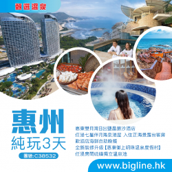 C38532 - 【甄選溫泉】全新裝修升級【惠東御上明珠溫泉度假村】+【惠東雙月灣日出鹽晶銀沙酒店】 保證入住正海景露台客房 歎酒店海鮮自助晚餐 任浸房間硫磺獨立溫泉池 純玩3天