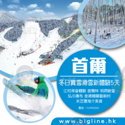 KORCD05 - 【首爾】冬日江村滑雪體驗 首爾林 明洞教堂 賞雪 弘川瀑布 米芝蓮推介美食 5天