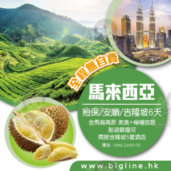 MALCA06-00 - 【美食+榴槤放題】馬來西亞金馬倫高原 船遊霹靂河 怡保 安順 吉隆坡6天【全程無自費、膳食全包】