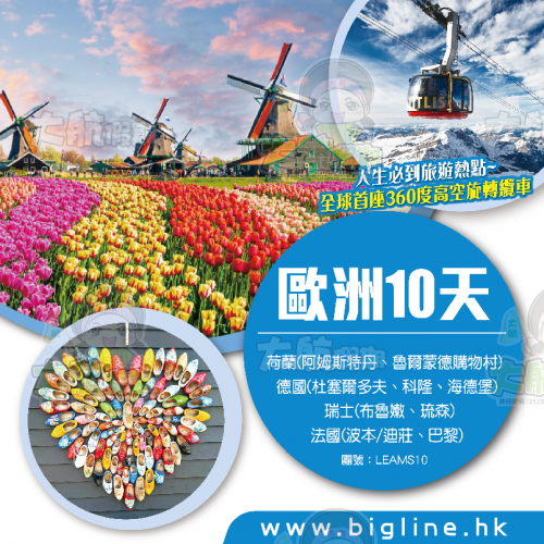 LEAMS10-01 - 歐洲10天 荷蘭(阿姆斯特丹、羊角村、鹿特丹)德國(科隆、海德堡)瑞士(琉森)法國(迪莊、巴黎)