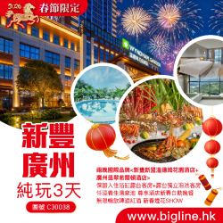 C30038 - 【春節限定】兩晚國際品牌<新豐新盟溫德姆花園酒店+廣州翡翠希爾頓酒店>保證入住浴缸露台客房+露台獨立泡池客房 任浸養生湯泉池 尊享酒店新春自助晚餐 無限暢飲啤酒紅酒 新春煙花SHOW 純玩3天