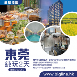 【星級酒店】鬧市中心國際品牌 【InterContinental 東莞洲際酒店】 保證入住約480呎豪華浴缸客房 豪嘆<酒店海鮮自助晚餐> 暢玩一年一度橋頭"金色海洋“金燦燦油菜花海 純玩2天