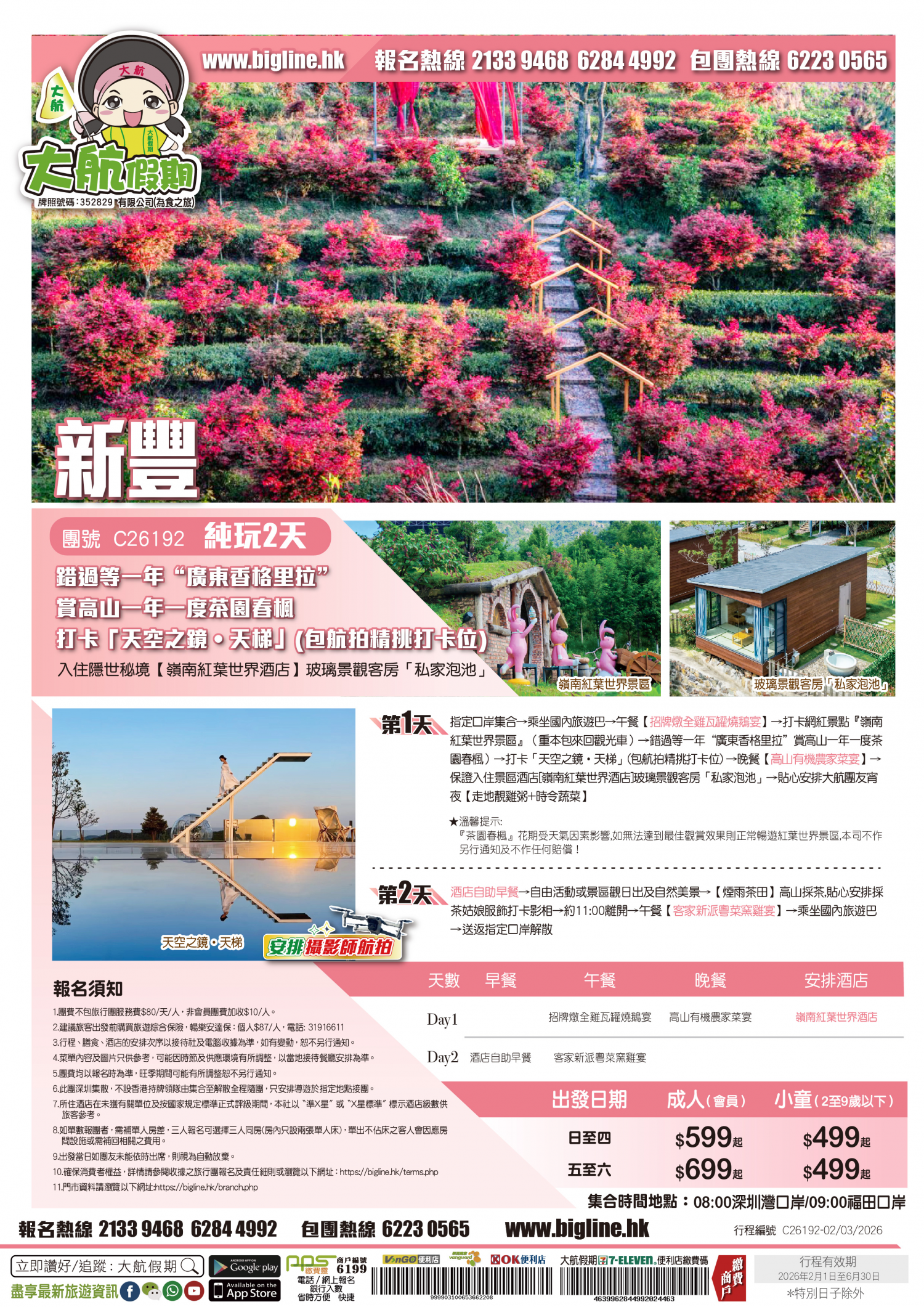 【季節限定】 錯過等一年“廣東香格里拉”賞高山一年一度茶園春楓 打卡「天空之鏡•天梯」(包航拍精挑打卡位) 入住隱世秘境【嶺南紅葉世界酒店】玻璃景觀客房「私家泡池」 純玩2天