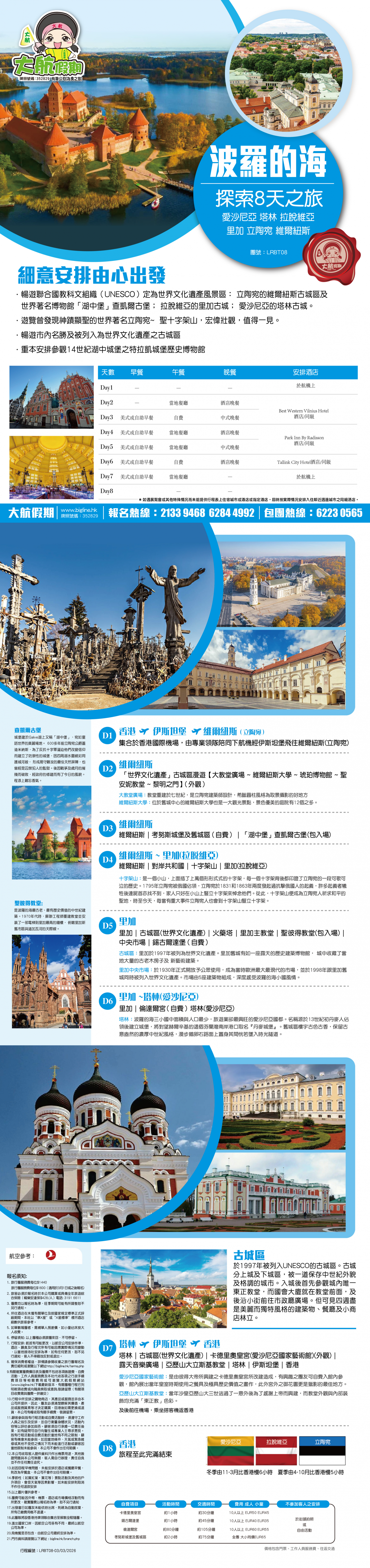 波羅的海 8天 < 愛沙尼亞 塔林 拉脫維亞 里加 立陶宛 維爾紐斯>