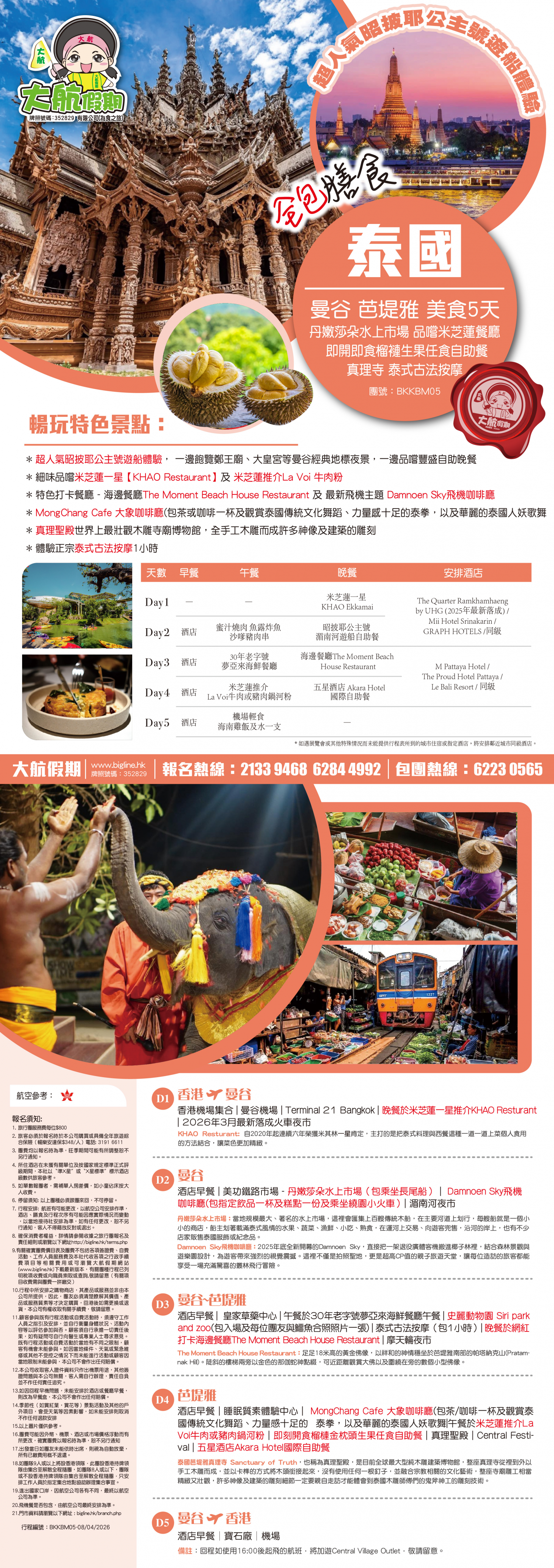 酒店早餐 | 睡眠質素體驗中心 | MongChang Cafe 大象咖啡廳(包茶/咖啡一杯及觀賞泰國傳統文化舞蹈、力量感十足的 泰拳,以及華麗的泰國人妖歌舞|午餐於米芝蓮推介La Voi牛肉或豬肉鍋河粉 | 榴槤金枕頭生果任食自助餐 | 真理聖殿 | Central Festival | 五星酒店Akara Hotel國際自助餐