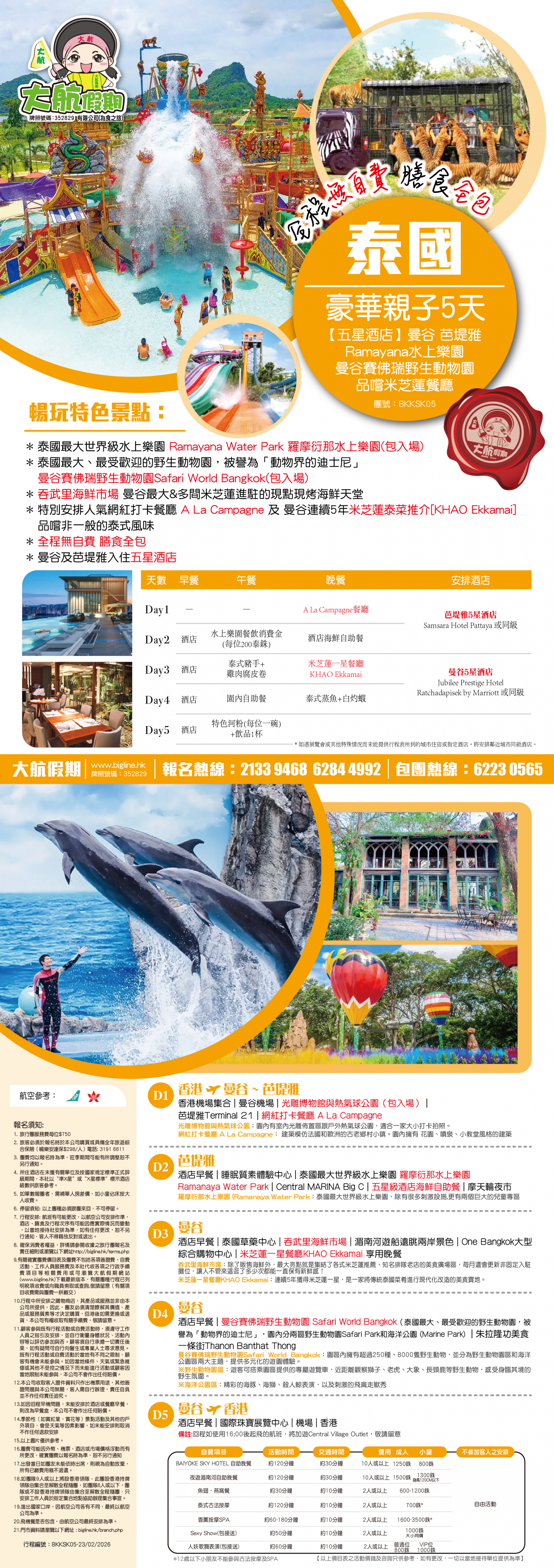 *團員繳付退票費後 (如適用): 1) 已繳款項可保留半年; 或 2) 選擇轉團後, 餘款則保留半年; 或 3) 可繳付『迫不得已理由』之手續費後, 取回已付餘款。 *個別機票+酒店套票產品如因『迫不得已理由』取消外遊行程, 處理旅客退款時亦按以上訂列收取每位退票費及手續費, 並以行程表 (套票單張) 所列為準。 責任細則: 1. 本公司保留合併團隊出發的權利。 2. 行程書或單張內所列費用根據當時機票價格及國際貨幣兌換率而訂立。外幣浮動等情況之下, 本公司保留在出發前調整各項費用的權利及徵收額外費用。 3. 所有列出的交通服務資料只供參考, 如有更改概不負責, 一切須以出票時為準。 4. 除本公司直接提供之服務外, 本公司及其職員或附屬公司或與本公司有經營關係之公司代理人身份在香港或外地安排其他獨立機構所提供之交通工具 (如飛機、輪船、火車、或遊覽巴士等) 、住宿、膳食或娛樂觀光項目等 (“委託機構”), 團員如遇交通延誤、行李遺失、意外傷亡或財物損失等, 該依照當地法律向擁有、管理或操作之委託機構直接交涉或追討賠償, 通常該等機構均各訂位不同條例, 以對客人負責。在此情況下, 本公司概不對該等損失或傷亡負責。 5. 除因由本公司之員工或其他直接管理或操作之機構之疏忽而引致團員之個人傷亡外, 本公司對團員在任何意外中之個人傷亡、經濟、娛樂或精神損失概不負責。 6. 除經本公司同意及安排, 如團員自行更改由其他人士代為參團, 本公司或其委託機構之職員有權取消其隨團之資格, 而無須發還任何團費, 而該人士在隨團期間之保險、責任賠償、行為後果等均由該人仕自行承擔。 7. 如因天氣、罷工、戰爭、怠工或安全情況影響而引致有關交通工具暫停服務, 停航或其他事故, 而必須將行程更改或取消部份行程, 本公司則將團員所繳交之費用扣除因以上事故而引致之損失後, 退回差額給團員。 8. 有關住宿、膳食、遊覽節目等問題, 均依據行程表安排, 行程先後次序有可能需要更改, 一切以當地安排為準。若遇特殊情況, 如簽證受阻, 當地酒店突告客滿或航機改變飛行時間或地點, 以及非本公司或其委託機構所能控制之因素, 令旅行團節目有增減, 或臨時更改交通工具、班機時間、機種及更換酒店等等, 本公司或其委託機構得依當時情況全權盡力處理, 團員不得藉故反對或退出, 因故取消之節目, 將不獲退還款項, 任何因延期而引致之額外支出, 本公司或其委託機構概不負責。 9. 所有酒店及住宿根據行程安排, 本公司視乎當時情形作出更改, 但不限於遇展覽會或特殊情況下, 將住宿鄰近城市之同等級酒店及住宿代替。本公司如因『迫不得已理由(外遊)』(即指戰爭、政治動盪、恐怖襲擊、天災、疫症、惡劣天氣、交通工具發生技術問題、載運機構臨時更改班次或取消服務、罷工、工業行動、旅遊目的地政府或世界衛生組織發出旅遊警示(警告)、香港特別行政區政府發出紅色或黑色外遊警示、不可抗力事件,以及業界不能控制的其他不利離開香港或在香港境外旅遊的情況)於外遊旅行團出發後更改任何項目而引致成本增加,可向顧客徵收額外費用。 10. 【已成團】代表該團號之指定出發日期預訂機位或已有足夠人數報名參加。但出發與否還受其他因素影響, 本公司保留最終決定權。 11. 任何團員在參與各項活動時, 如經常不遵守服飾人員之指引或安排, 在行動或言語上侮辱或滋擾其他團員或工作人員, 本公司或其委託機構職員有權視具體情況而取消其隨團資格而母須發任何團費, 而受該旅客監護之18歲以下同行團員亦須一併離開, 有關旅客離團後一切活動, 概與本公司或其委託機構無關。 12. 團員如欲於旅程完畢後延期返港, 須於出發前十四天提出, 以便本公司代為預定返港機位, 延期返港之機位, 未能即時作實, 團員不得藉此理由要求退出, 旅程完畢後延期逗留之費用, 概由團員自負。 13. 延期返港之團友, 必須在離境前七十二小時向航空公司確實回程機位, 任何機位如有變更, 概與本公司無關。 14. 團員如在旅途中自行離團或放棄行程, 離團後之責任自負, 一切後果與本公司或其委託機構無關。 15. 參團者須切實遵守各國及各地法例, 包括但不限於防疫防控條例, 並嚴禁攜帶違例物品出入境, 並照實申報攜帶之物品及現金。 16. 任何種類的簽證審批權及出入境批准權一律由該國或地區之領事館及/或出入境部門全權決定, 出入境如有問題, 責任旅客自負, 本公司或其委託機構母須負任何責任。如簽證已代辦, 簽證費恕不退還。 17. 即使團員持有效之入境簽證及旅遊證件, 而於入境時被當值之移民局海關人員拒絕入境, 本公司或其委託機構亦無須負任何責任。所需額外安排之食宿、交通費用、全部由其本人負責, 其餘下的行程亦將不會獲得任何補償, 亦不得要求退款或改團。 18. 中國內地相關法規規定, 即日起旅客入住中國內地境內酒店時, 公安機關會透過酒店前台向旅客一併採集人像信息資訊。 19. 如出現一些非本公司能力範圍可控制之問題 (如花卉、紅葉提早凋謝或景觀、自然現象、景點活動或戶外項目) 會受天氣等因素影響, 如未能安排則取消不作任何退款安排。 20. 旅客如在旅程中確診 COVID-19或其他傳染病,無論受到當地政府隔離或其他檢疫要求影響與否,為確保其他旅客之安全,確診旅