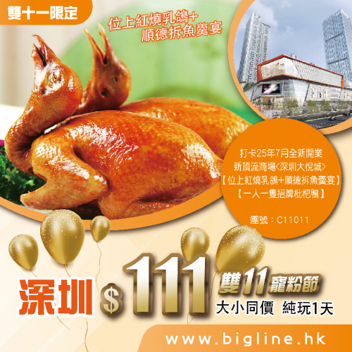 | 第1天 | 位上紅燒乳鴿+順德拆魚羹宴 |