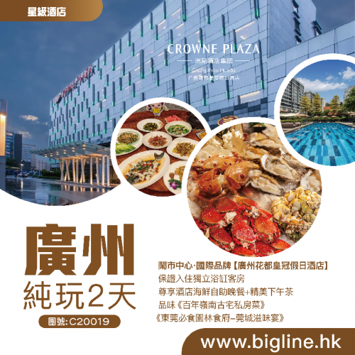 【星級酒店】鬧市中心·國際品牌【廣州花都皇冠假日酒店】保證入住獨立浴缸客房 尊享酒店海鮮自助晚餐+精美下午茶 品味《百年嶺南古宅私房菜》《東莞必食園林食府-莞城滋味宴》純玩2天