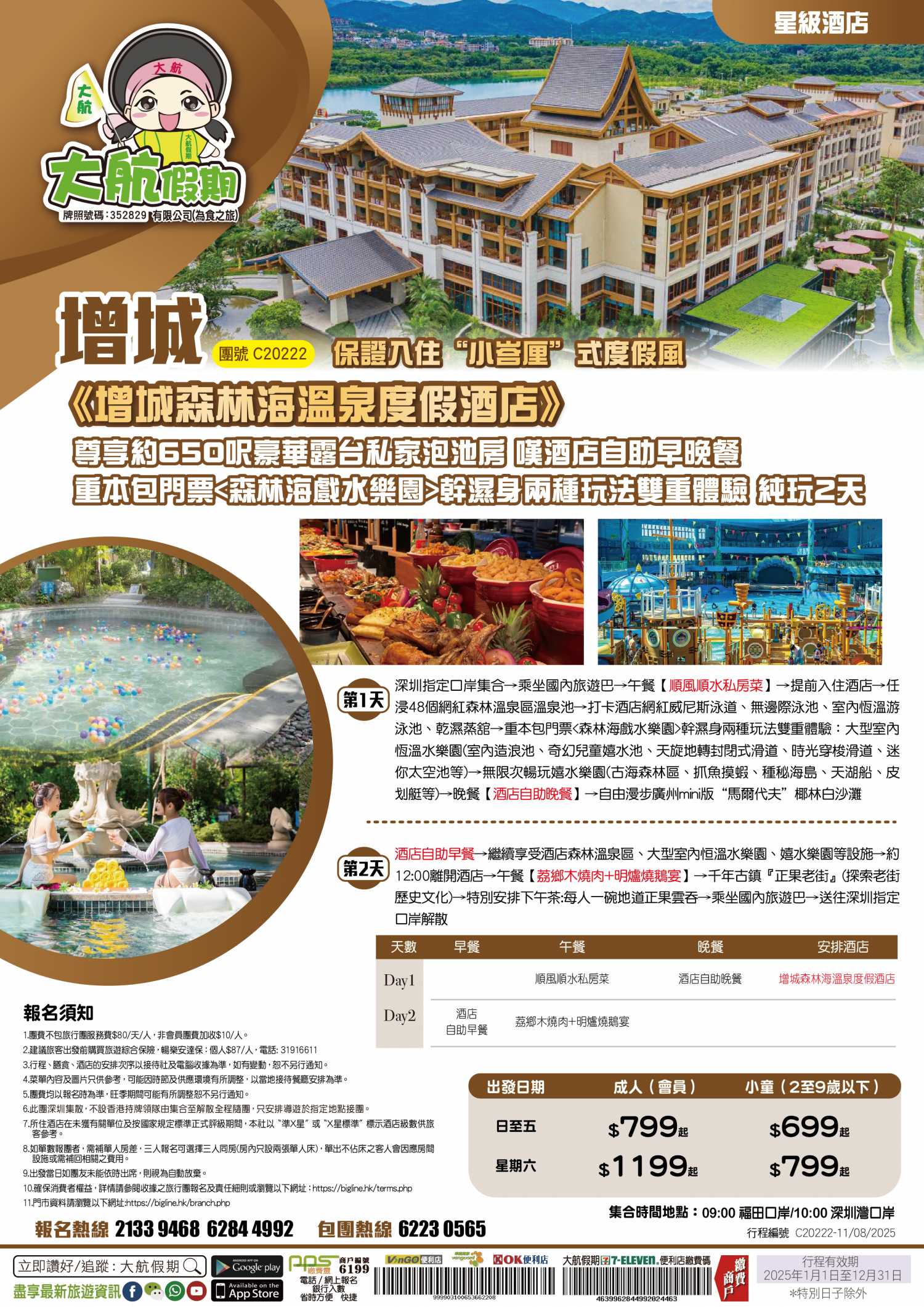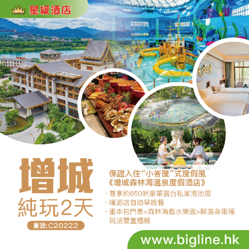 | 第1天 | 順風順水私房菜 | 酒店海鮮自助晚餐 | 增城森林海溫泉度假酒店 | |