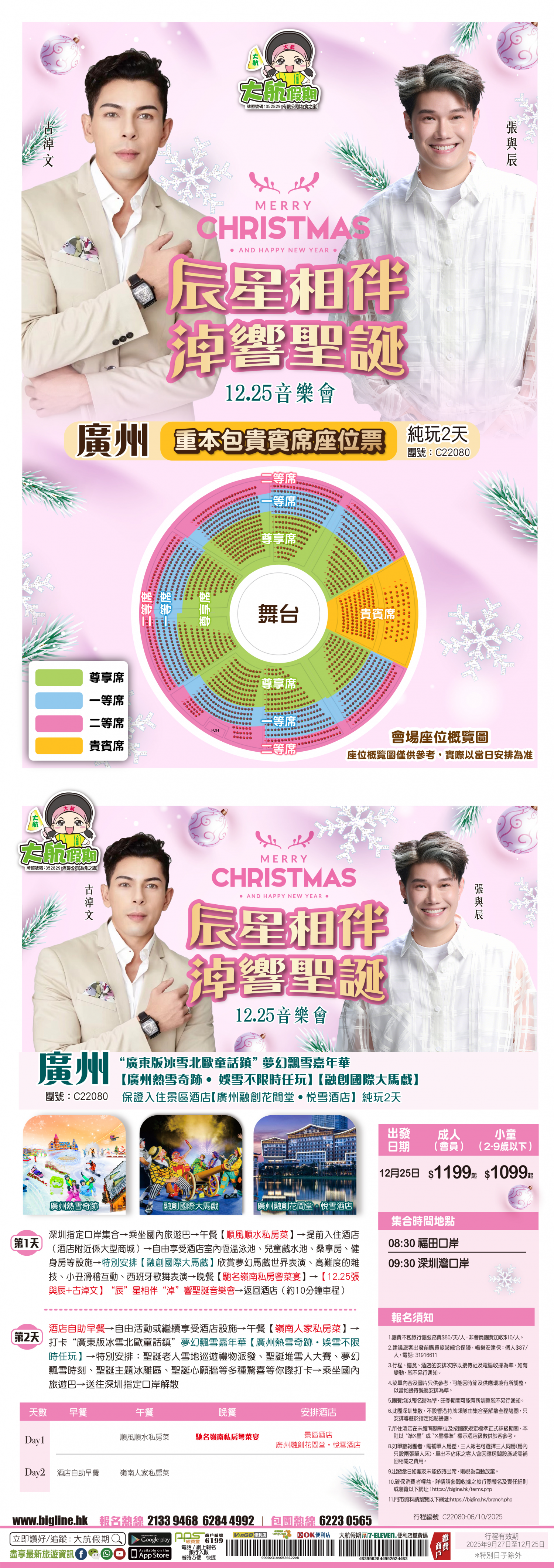 【12.26 黎耀祥x王鄭浚仁】《尊享席座位票》重本玩轉4大至HIT熱點 2025年全新開業『清遠長隆森林王國』『廣東宋城千古情』『廣州熱雪奇跡·滑雪娛雪2選1』『融創國際大馬戲』純玩3天