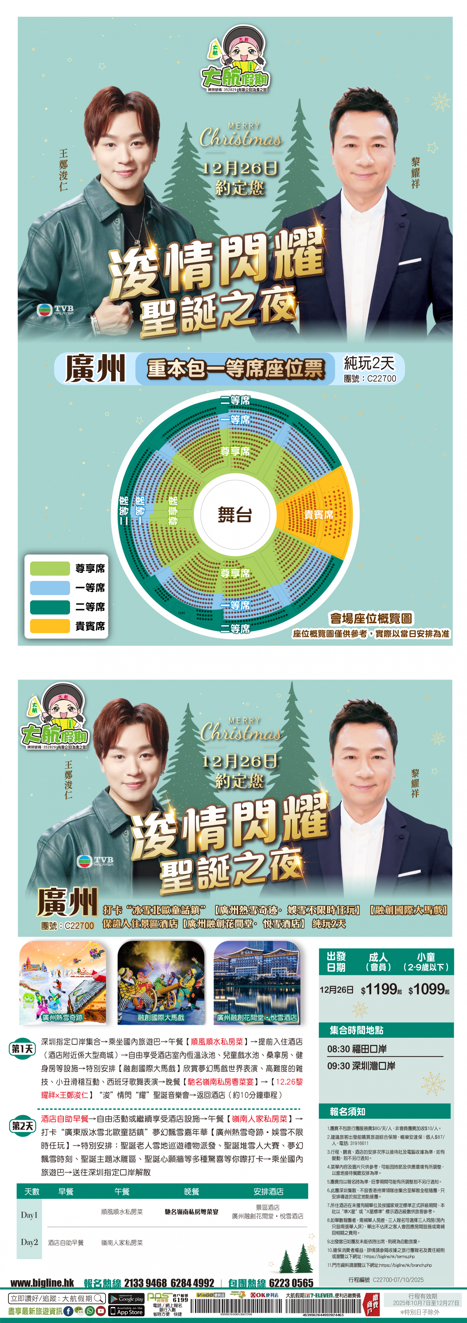 【12.26 黎耀祥x王鄭浚仁】《尊享席座位票》重本玩轉4大至HIT熱點 2025年全新開業『清遠長隆森林王國』『廣東宋城千古情』『廣州熱雪奇跡·滑雪娛雪2選1』『融創國際大馬戲』純玩3天