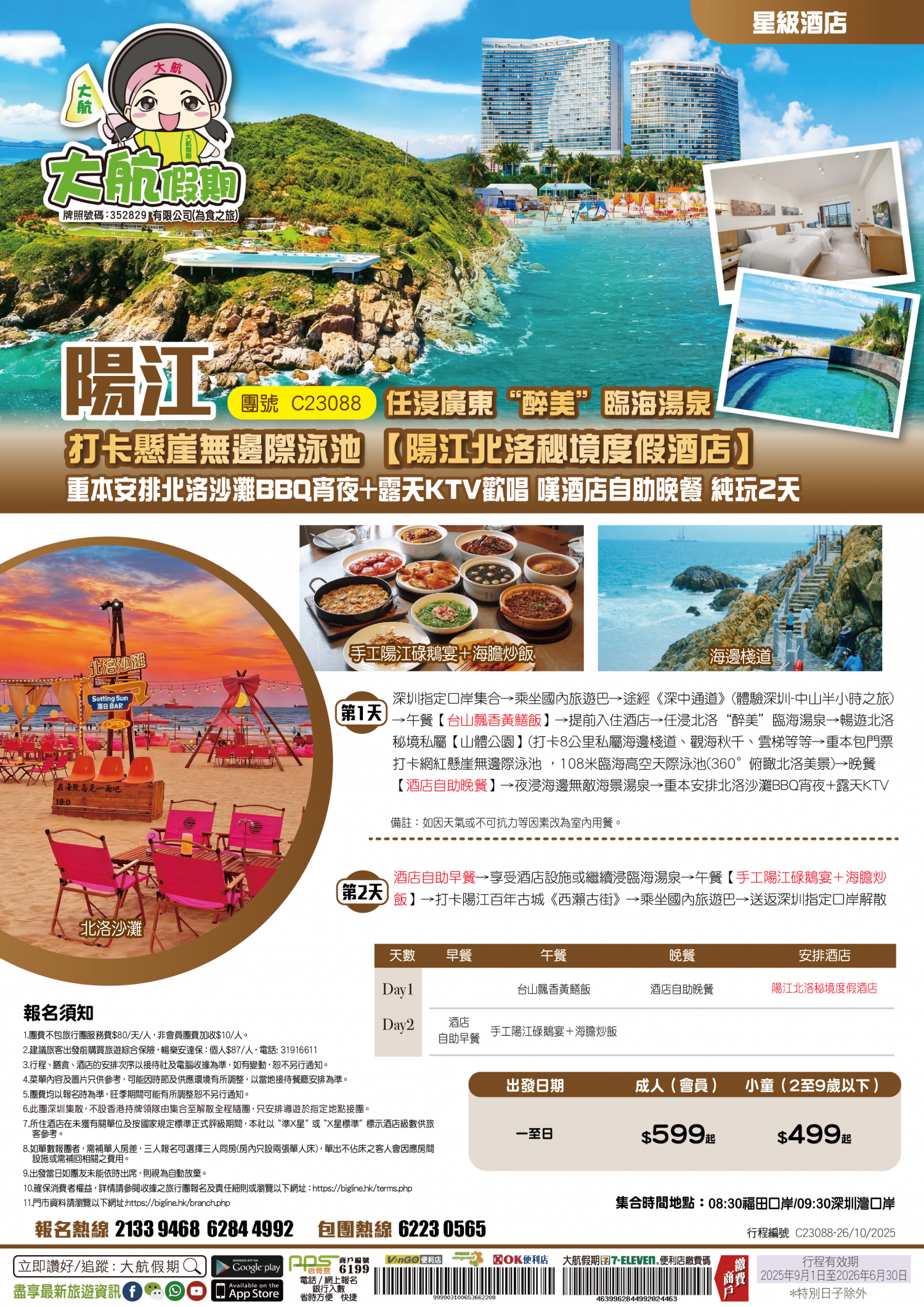 | 第1天 | 招牌黃鱔飯 | 酒店中式自助晚餐 | 陽江北洛秘境度假酒店 | |