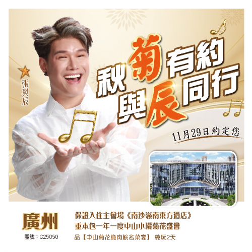 | 第1天 | 30年老字號<金獎荔枝柴燒雞+傳統波霸大煎堆宴> | 11.29菊展明星晚宴 | 廣州南沙開建嶺南東方酒店 | |