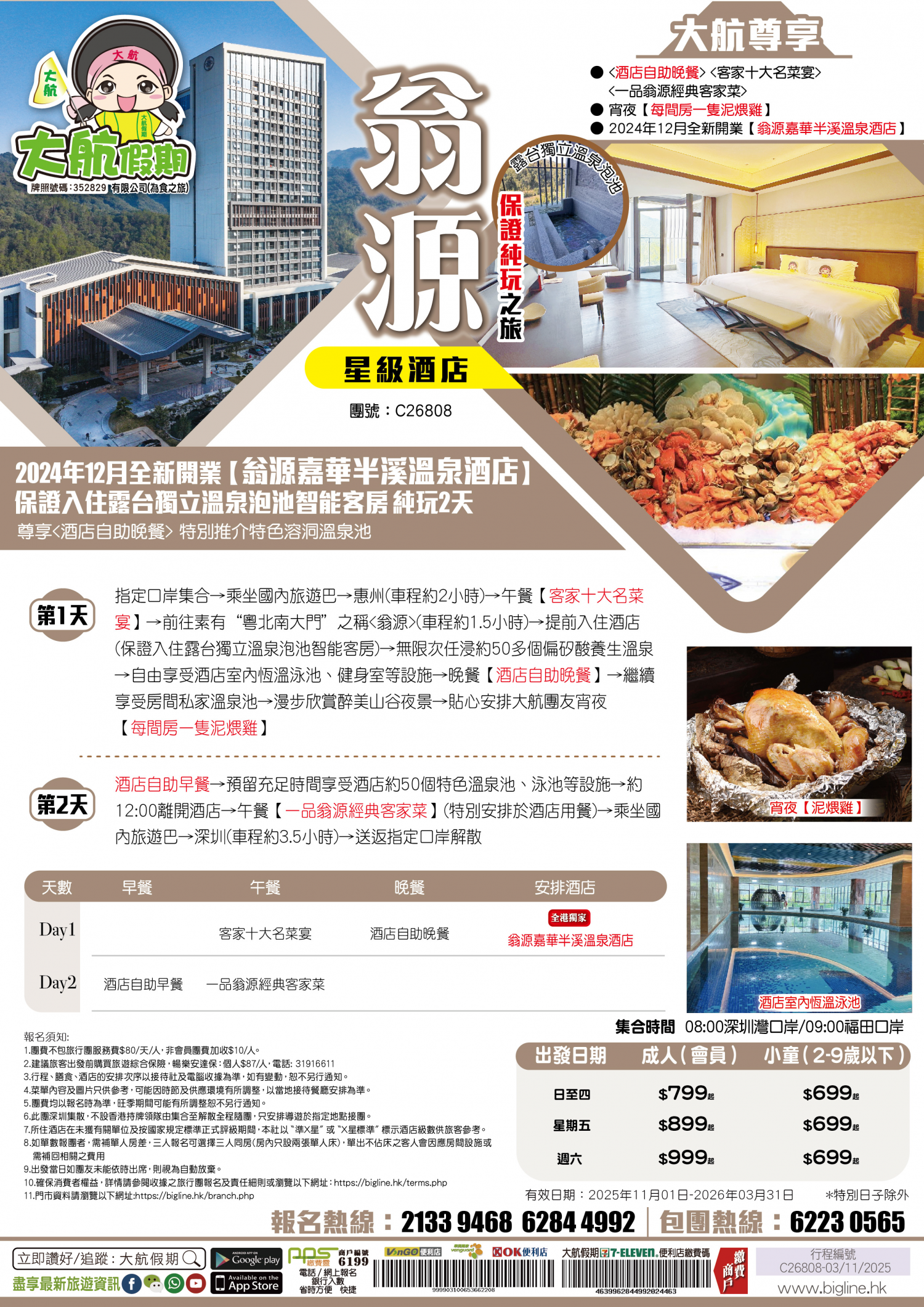 | 第1天 | 客家十道風味宴 | 酒店自助晚餐 | 翁源嘉華半溪溫泉酒店 | |