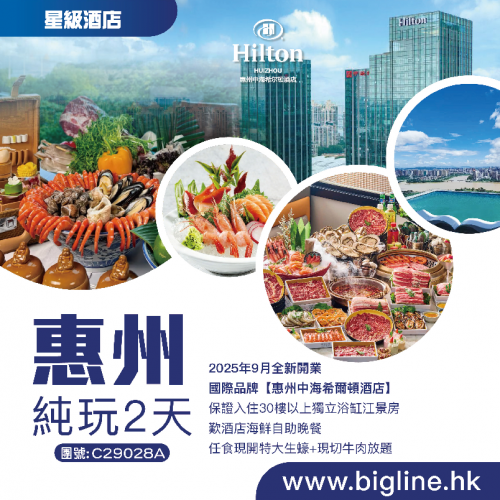 | 第1天 | 東江鹽焗雞宴 | 酒店海鮮自助晚餐 | 惠州中海希爾頓酒店 | |
