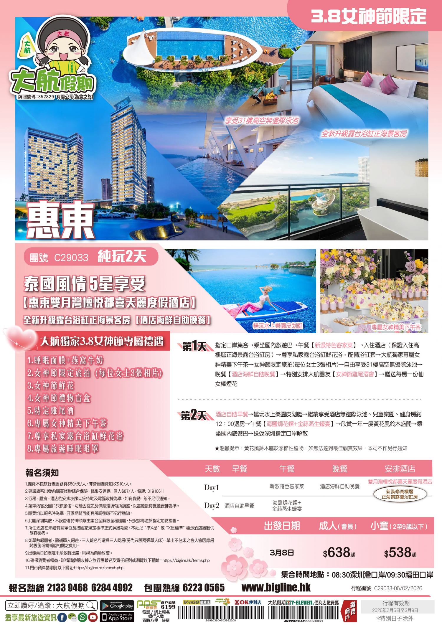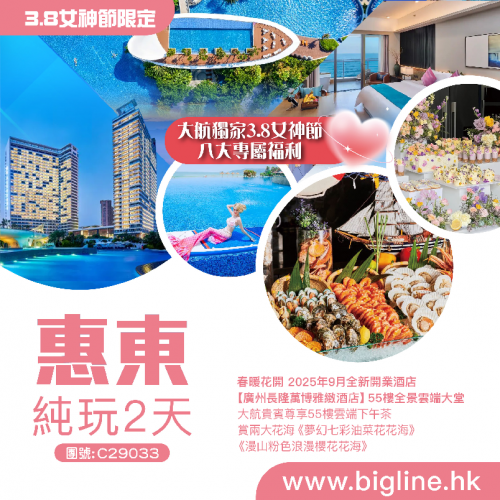 【3.8女神節限定】特別安排大航獨家女神節8大專屬禮遇 重新升級泰國風情 5星享受【惠東雙月灣檀悅都喜天麗度假酒店】 保證入住私家露台浴缸正海景客房 【酒店海鮮自助晚餐】 純玩2天