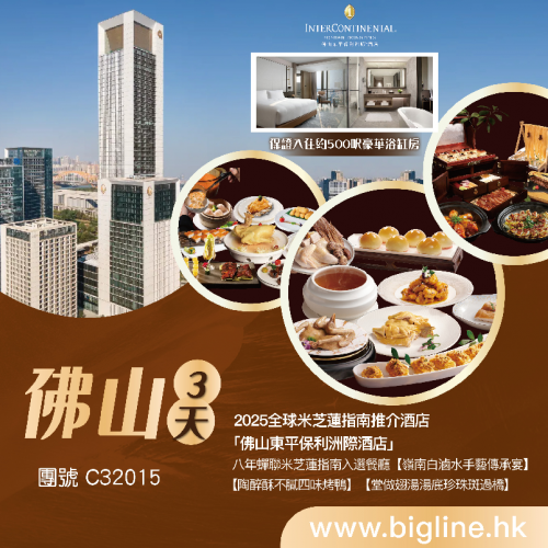 【星級廚房】三大米芝蓮必比登推介餐廳「大鴿飯+嶺南海晏樓+向群飯店」重本安排體驗【廣州珠江夜遊】保證入住洲際酒店集團旗下 2025年7月全新開業國際品牌《廣州白雲站逸衡酒店》純玩2天