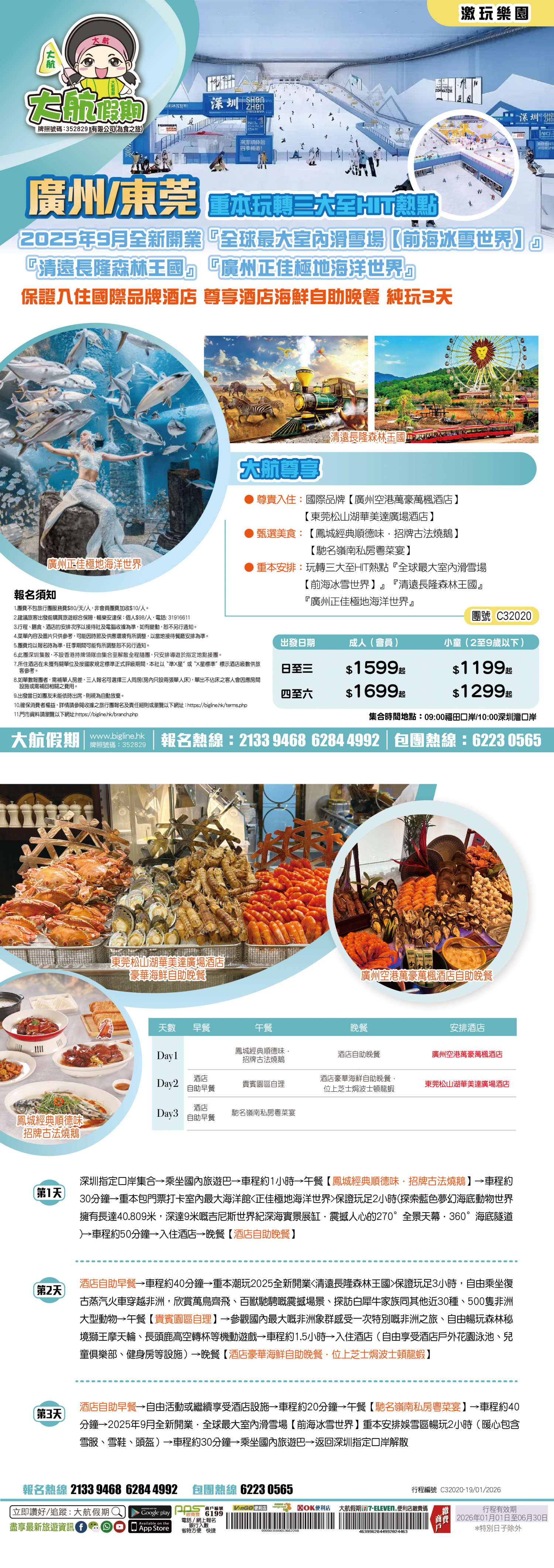 【激玩樂園】重本玩轉三大至HIT熱點 2025年9月全新開業『全球最大室內滑雪場【前海冰雪世界】』『清遠長隆森林王國』『廣州正佳極地海洋世界』保證入住國際品牌酒店 尊享酒店海鮮自助晚餐 純玩3天