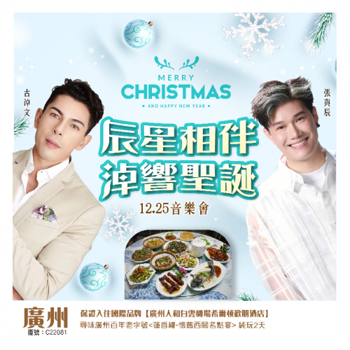 <12.25古淖文+張與辰>保證入住國際品牌【廣州人和白雲機場希爾頓歡朋酒店】尋味廣州百年老字號<蓮香樓-懷舊西關名點宴>純玩2天