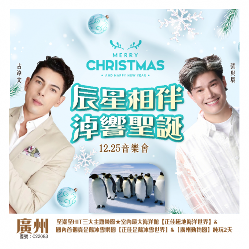 <12.25古淖文+張與辰> 至潮至HIT三大主題樂園★室內最大海洋館【正佳極地海洋世界】&國內首個真企鵝冰雪樂園【正佳企鵝冰雪世界】&【廣州動物園】純玩2天