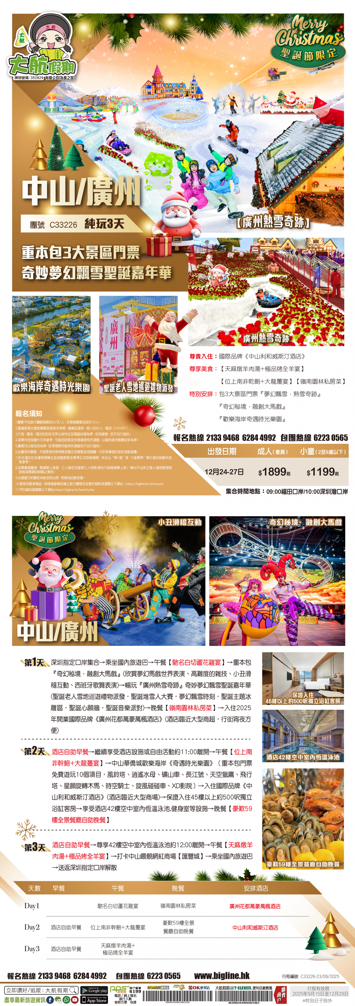 聖誕節(短線)早報優惠(12月24-27日出發之團隊)