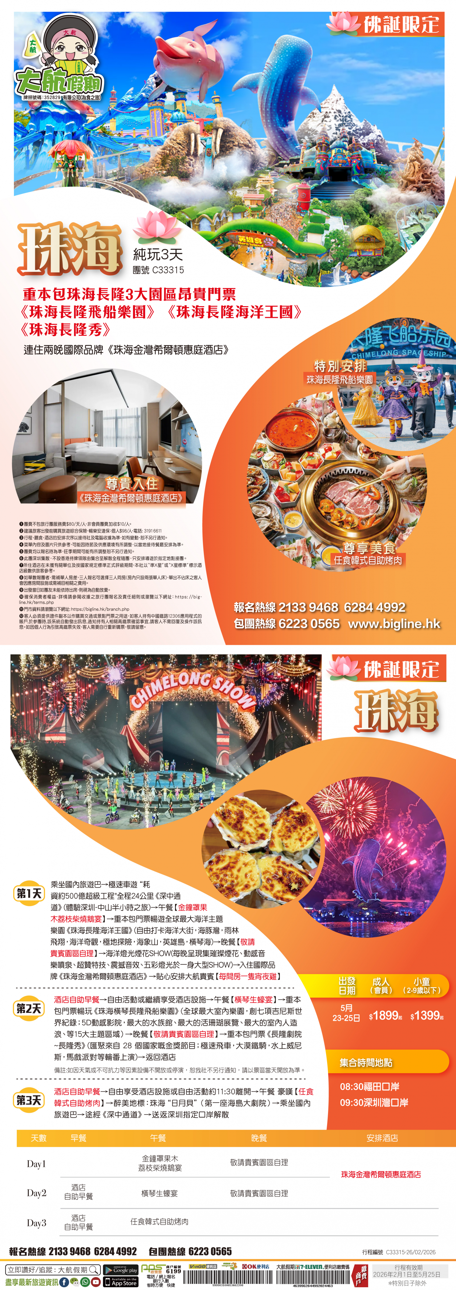 【佛誕限定】重本包珠海長隆3大園區昂貴門票《珠海長隆飛船樂園》《珠海長隆海洋王國》《珠海長隆秀》 連住兩晚國際品牌《珠海金灣希爾頓惠庭酒店》純玩3天