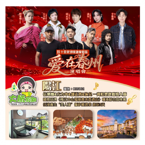 【2.18年初二晚會】蔣志光&韋綺姍<相識好知音 金曲賀新春> 保證入住國際品牌《中山利和威斯汀酒店》打卡新春"喜"市美食集市+一年一度迎春花燈 任摘任食士多啤梨 純玩2天