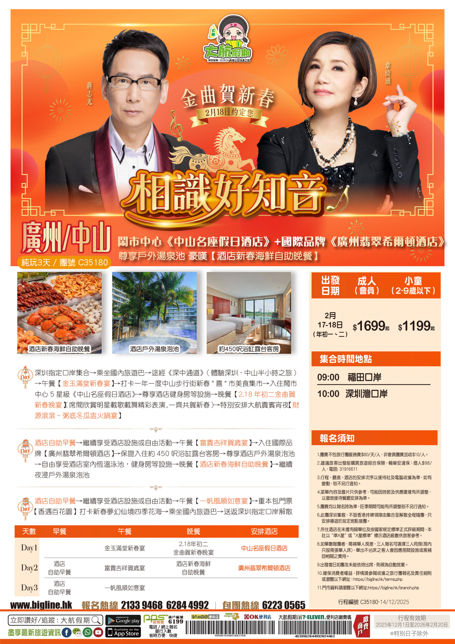 新春(廣東省短線)8人以上再減$30((2月17-20日年初一到初四出發之團隊)