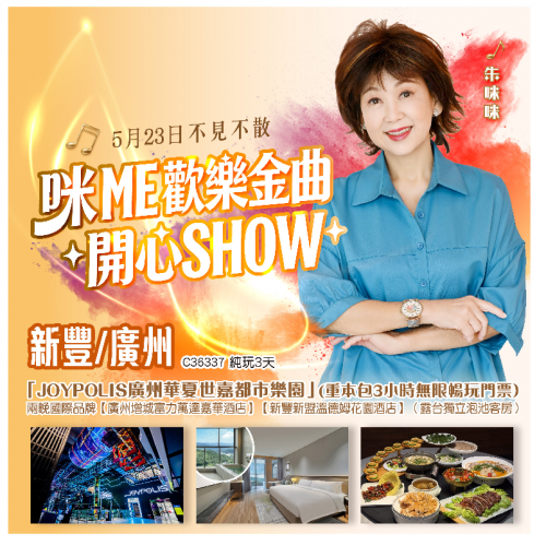 【5.23佛誕晚會】<咪 ME 歡樂金曲開心SHOW>東莞豪華五星級【塘廈三正半山溫泉酒店】保證入住獨立浴缸露台客房~豪嘆酒店三大自助餐《早+午+晚自助餐》大航貴賓專屬【夏日水運會】 純玩3天