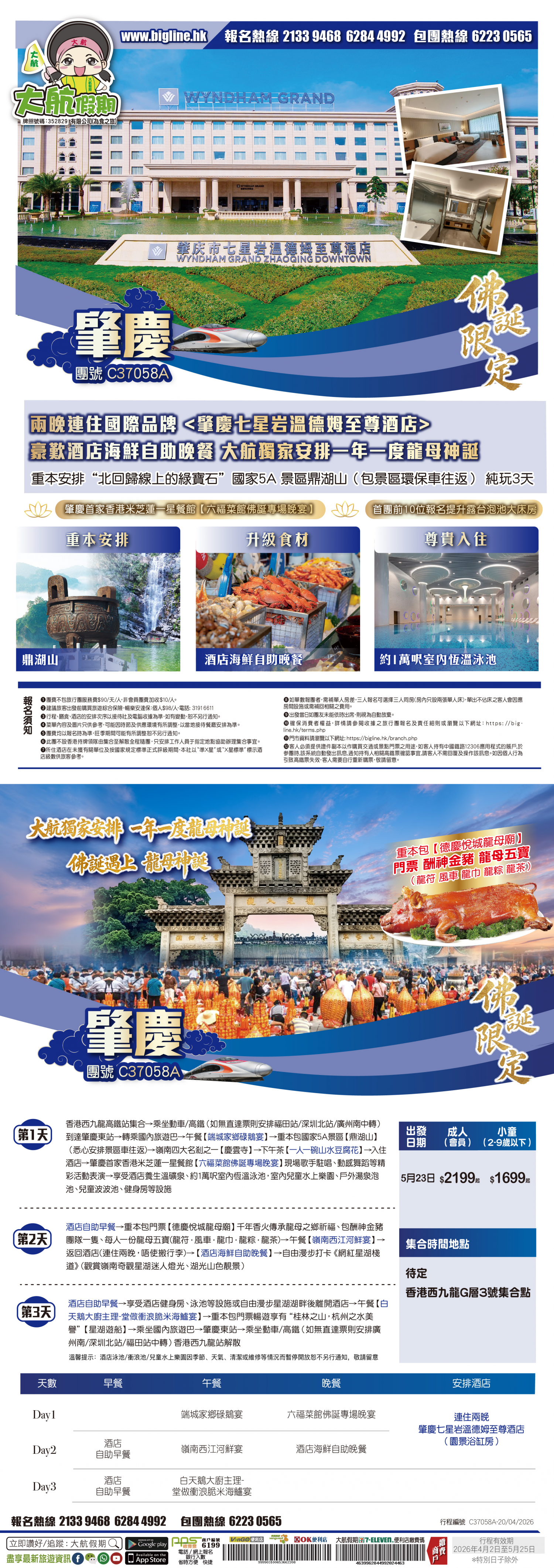| 第2天 | 酒店自助早餐 | 嶺南西江河鮮宴 | 酒店海鮮自助晚餐 | 肇慶七星岩溫德姆至尊酒店 |