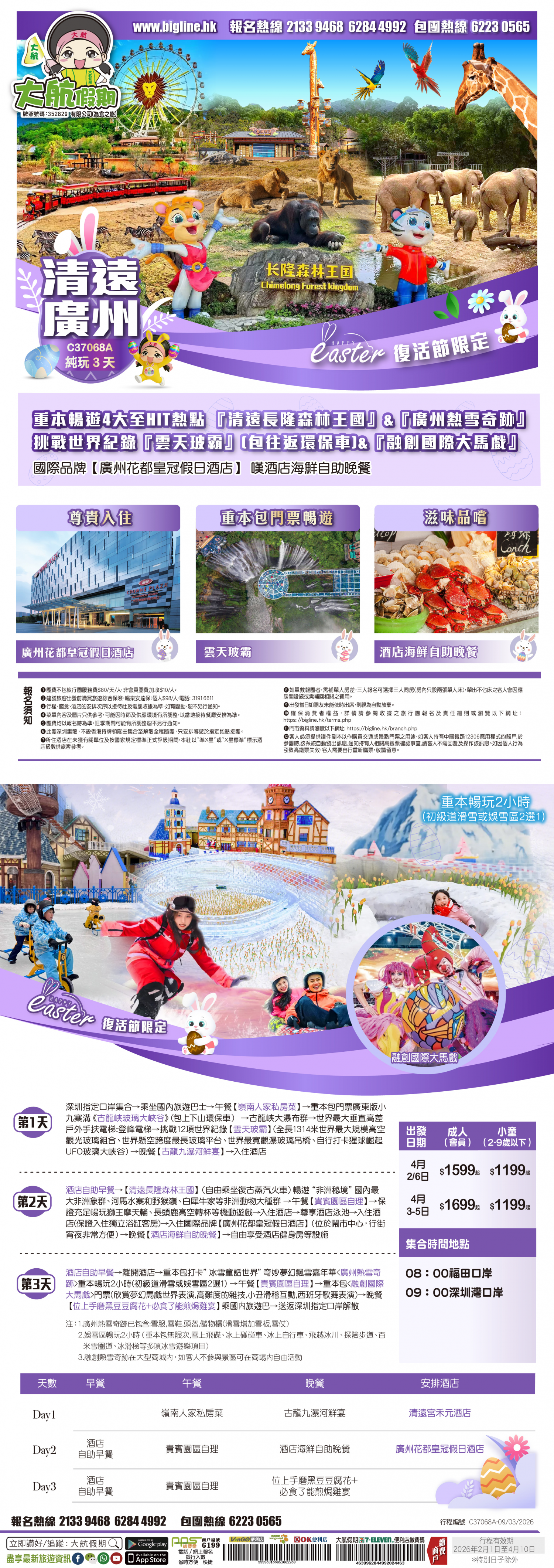 【復活節限定】 重本玩轉4大熱點主題『清遠長隆森林王國』&挑戰世界紀錄『雲天玻霸』(包往返環保車)&『廣州熱雪奇跡』&『融創國際大馬戲』國際品牌【廣州花都皇冠假日酒店】 嘆酒店海鮮自助晚餐 純玩3天
