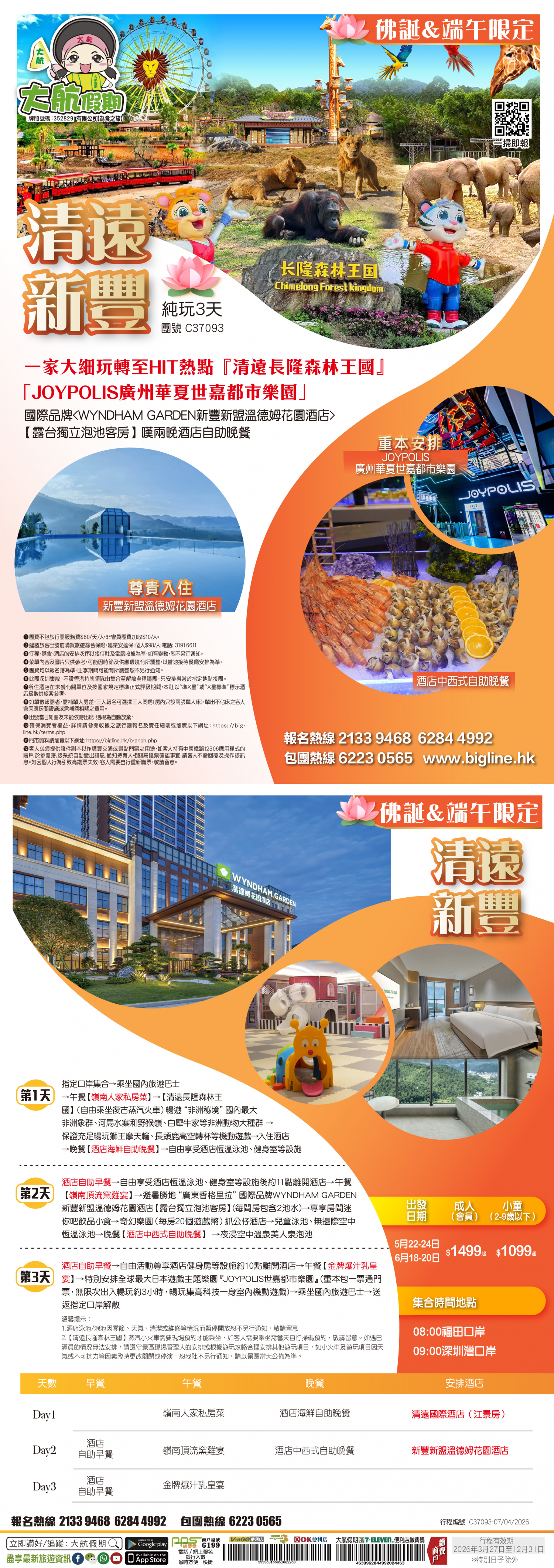 | 第2天 | 酒店自助早餐 | 嶺南頂流窯雞宴 | 酒店中西式自助晚餐 | 韶關新盟溫德姆花園酒店 |